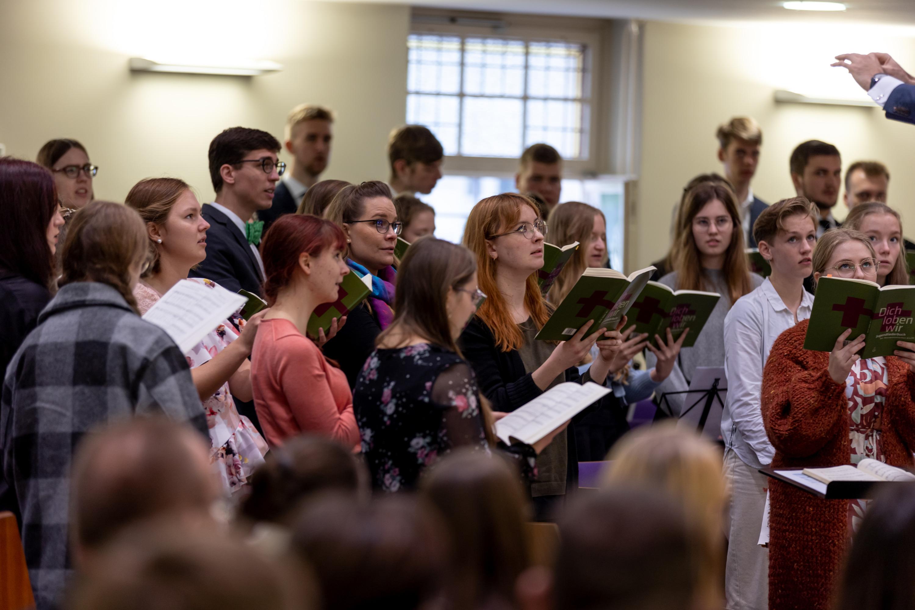 Evangelist Schönicke räumte im zweiten Teil des Gottesdienstes mit dem Vorurteil „der Jugend von heute“ auf. Das „Z“ in Generation Z stünde auch für Zuversicht, Zuneigung und Zukunft. Die Jugend hätte die Gewissheit zu einer Gruppe zu gehören, die füreinander bete und zu der man sich zugehörig fühlen könne.
