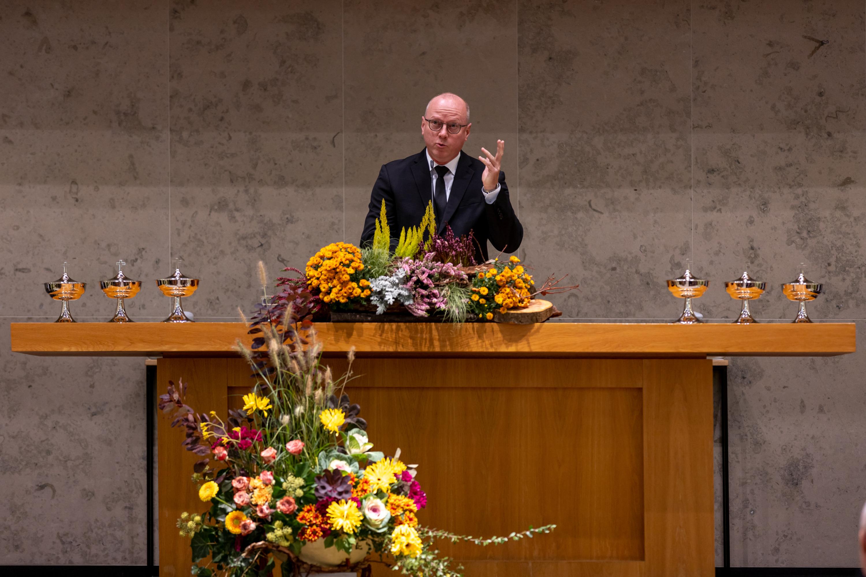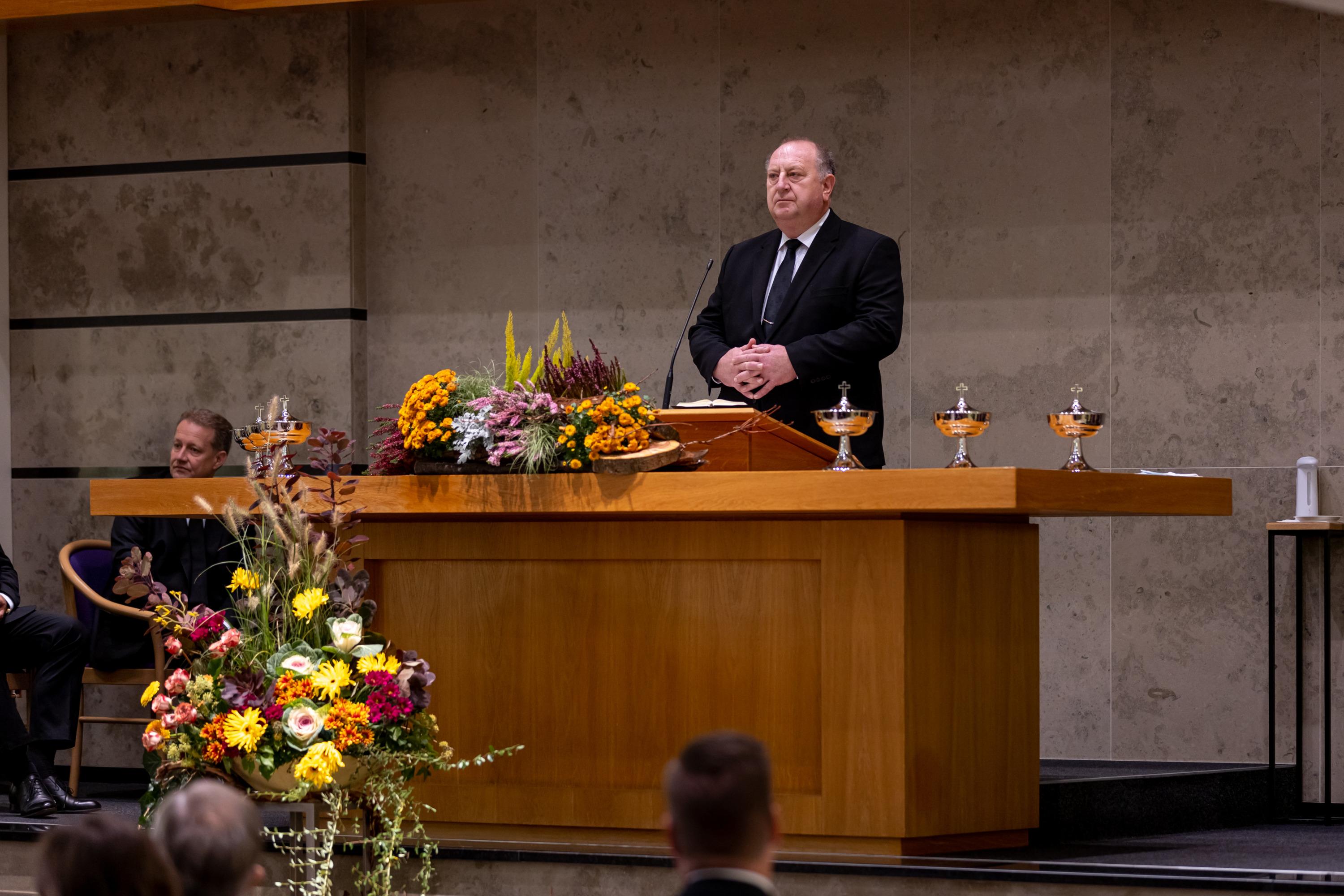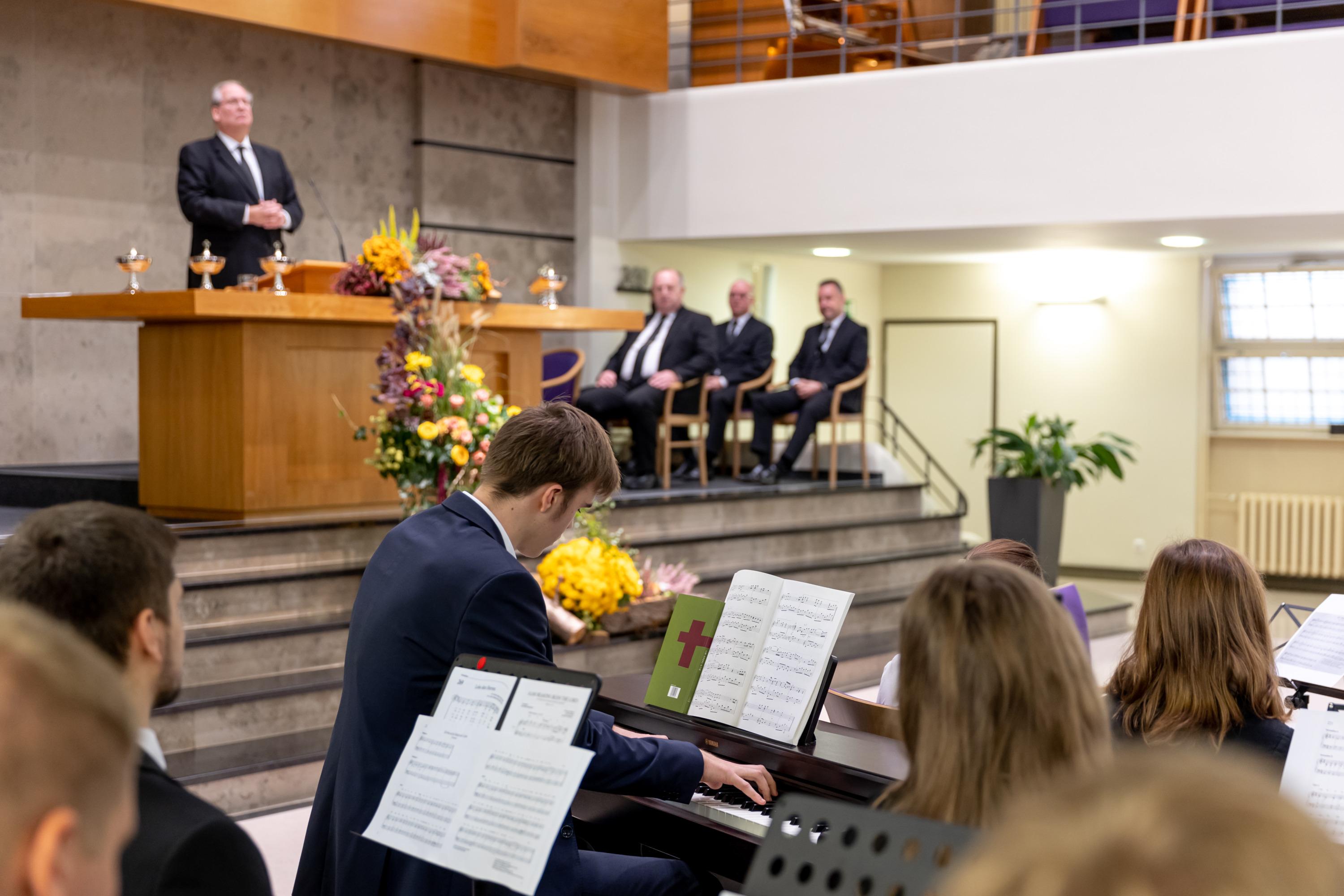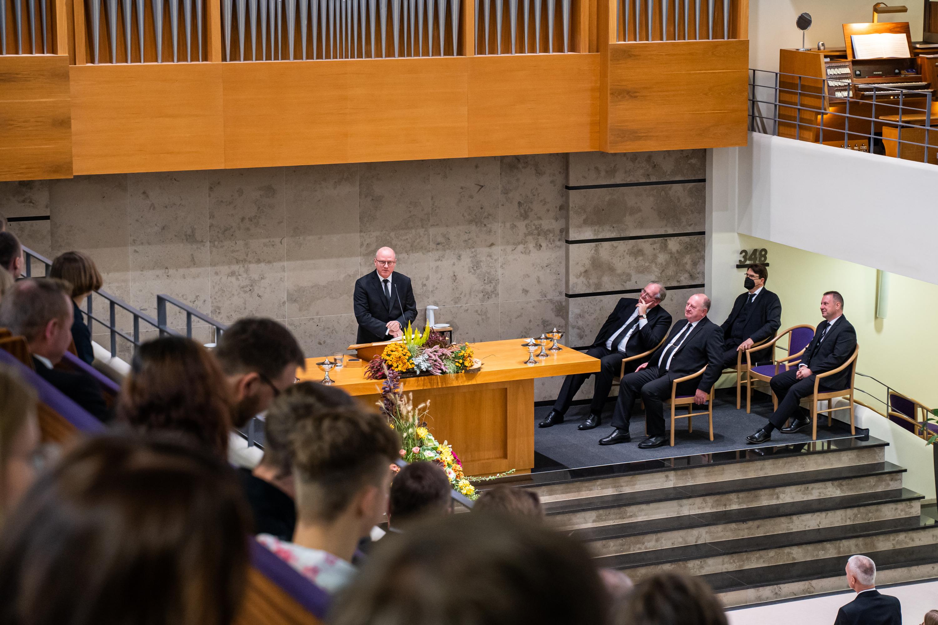Evangelist Schönicke räumte im zweiten Teil des Gottesdienstes mit dem Vorurteil „der Jugend von heute“ auf. Das „Z“ in Generation Z stünde auch für Zuversicht, Zuneigung und Zukunft. Die Jugend hätte die Gewissheit zu einer Gruppe zu gehören, die füreinander bete und zu der man sich zugehörig fühlen könne.
